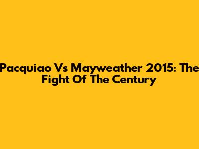 Pacquiao Vs Mayweather 2015: The Fight Of The Century