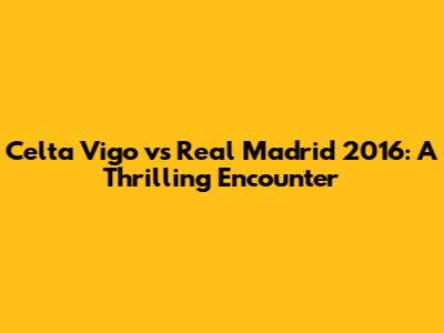 Let's take a trip down memory lane, guys! We're diving into a fantastic match from 2016: Celta Vigo against the mighty Real Madrid. This wasn't just any game; it was a clash of titans, a real nail-biter that had fans on the edge of their seats. So, grab your favorite snack, and let's get into the details of this unforgettable showdown. We will explore the pre-match buzz, key moments during the game, standout player performances, and the overall impact this match had on the season. Trust me, by the end of this, you'll feel like you were right there in the stadium, experiencing all the action firsthand!