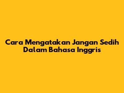 Cara Mengatakan "Jangan Sedih" Dalam Bahasa Inggris