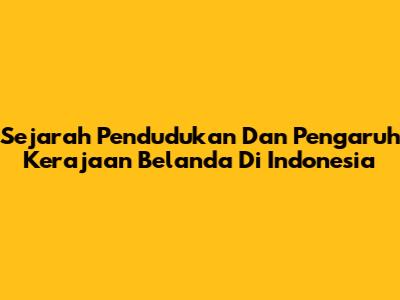 Sejarah Pendudukan Dan Pengaruh Kerajaan Belanda Di Indonesia
