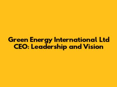 Vision and Strategic Direction Set by the Green Energy International Ltd CEO