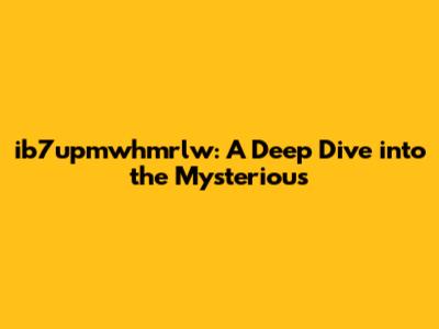 ib7upmwhmrlw: A Deep Dive into the Mysterious