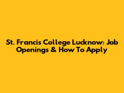 St. Francis College Lucknow: Job Openings & How To Apply
