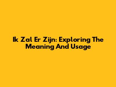Ik Zal Er Zijn: Exploring The Meaning And Usage