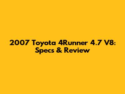 2007 Toyota 4Runner 4.7 V8: Specs & Review