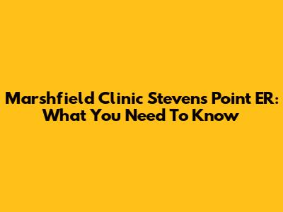Marshfield Clinic Stevens Point ER: What You Need To Know