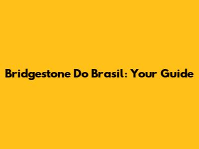 Bridgestone Do Brasil: Your Guide