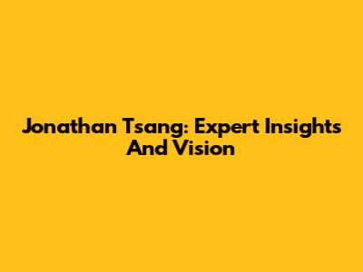 Jonathan Tsang: Expert Insights And Vision