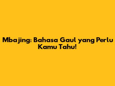 Mbajing adalah salah satu contoh bagaimana bahasa gaul terus berkembang dan beradaptasi dengan budaya dan tren yang ada. Jadi, jangan ragu untuk menggunakan kata ini dalam percakapan sehari-hari, selama kamu memahami maknanya dan menggunakannya dengan tepat. Dengan begitu, kamu akan terlihat lebih up-to-date dan mampu berinteraksi dengan teman-temanmu dengan lebih akrab.