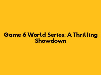 Game 6 World Series: A Thrilling Showdown