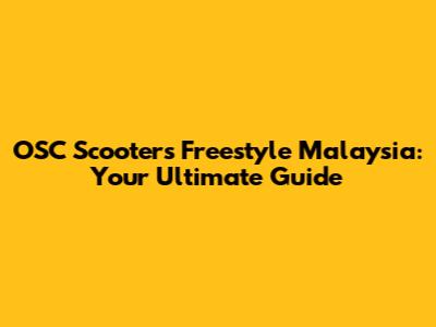 Hey guys! Welcome to the ultimate guide for everything OSC Scooters Freestyle Malaysia! If you're into the adrenaline-pumping world of freestyle scootering, you've come to the right place. We're diving deep into the Malaysian freestyle scene, covering everything from the basics of scootering to advanced tricks, and of course, how to keep your ride in tip-top shape. Whether you're a total newbie or a seasoned pro, there's something here for you. So, buckle up, grab your scooter, and let's get rolling!