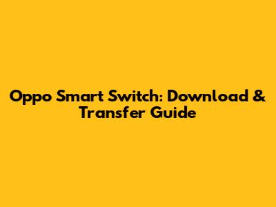 Oppo Smart Switch: Download & Transfer Guide