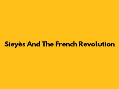 Sieyès And The French Revolution