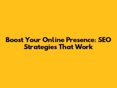 Boost Your Online Presence: SEO Strategies That Work