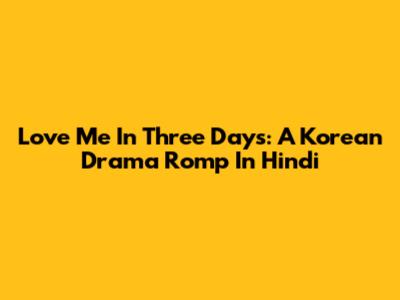 Love Me In Three Days: A Korean Drama Romp In Hindi