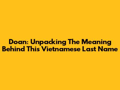 Doan: Unpacking The Meaning Behind This Vietnamese Last Name