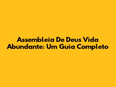 Assembleia De Deus Vida Abundante: Um Guia Completo