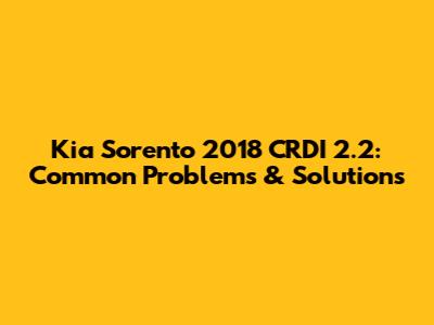 Kia Sorento 2018 CRDI 2.2: Common Problems & Solutions