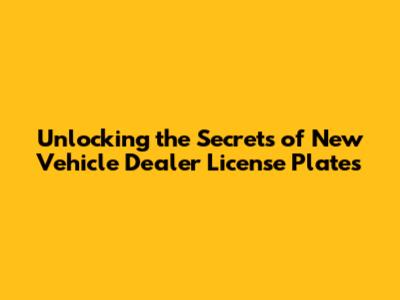 Hey everyone, are you ready to dive into the world of new vehicle dealer license plates? We're going to explore everything from what they are, why they're used, and how they function. It's a fascinating area, especially if you're into cars, running a dealership, or just curious about the behind-the-scenes of the automotive industry. So, buckle up, because we're about to take a ride! Understanding these license plates is crucial for vehicle dealers, enabling them to legally operate and manage their inventory. These plates aren't just for show; they're essential tools that facilitate the sale, demonstration, and transport of vehicles. Let's start with the basics, shall we?