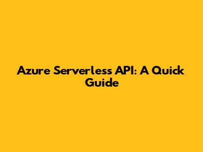 Azure Serverless API: A Quick Guide