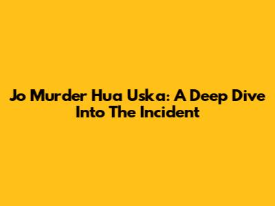 Jo Murder Hua Uska: A Deep Dive Into The Incident
